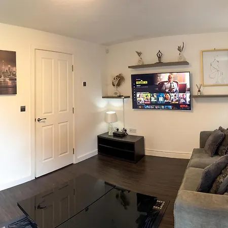Die 3-Zimmer- Amersham Park Apartment befindet sich im Bezirk Salford und verfügt über eine Terrasse mit Blick auf den Garten.